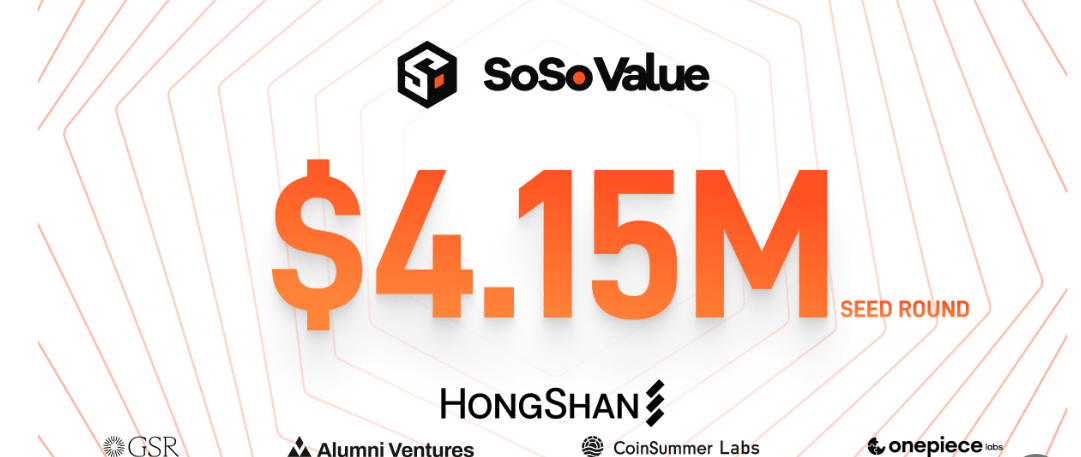 - SoSoValue, a Singapore-based crypto financial research startup, closed a $4.15 million seed funding round led by HongShan, GSR Markets, and others, including prominent Web3 and AI tech founders.