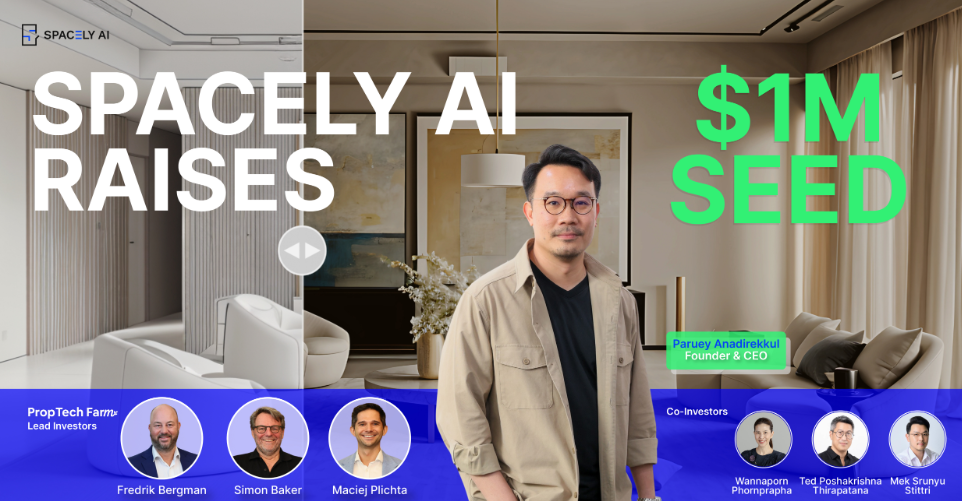 PRESS RELEASE — Spacely AI, the Bangkok-based startup bringing generative AI to architecture and interior design, has raised US $1 million in Seed funding led by PropTech Farm Fund III, with participation from Wannaporn Phornprapha (Managing Director, P Landscape Co., Ltd.), Ted Poshakrishna Thirapatana (Founder, UTC Holdings Co., Ltd.), and Mek Srunyu Stittri (former VP Engineering, GitLab). The round follows Spacely AI’s pre-seed investment from SCB 10X. The new capital will accelerate product development and expand the company’s footprint in key global markets.